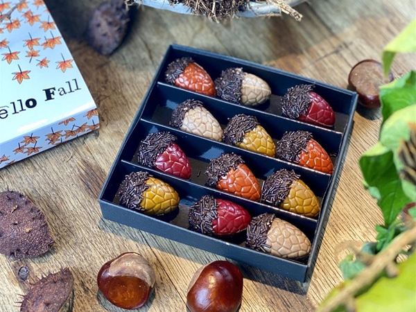 Heerlijke gevulde chocolade eikeltjes in 4 kleuren/smaken